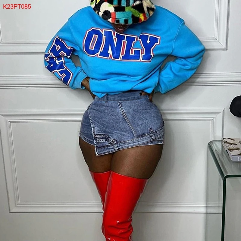 Cutenova K23PT085 Sexy Asymmetrical Two Piece Denim Shorts Plus Size Women Jean Shorts
